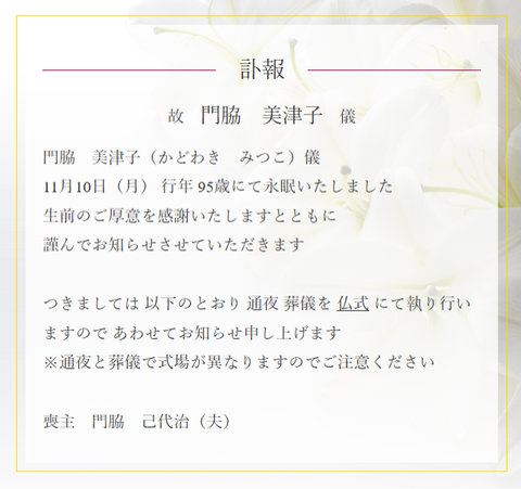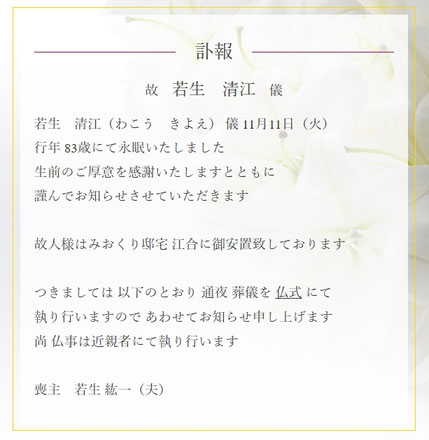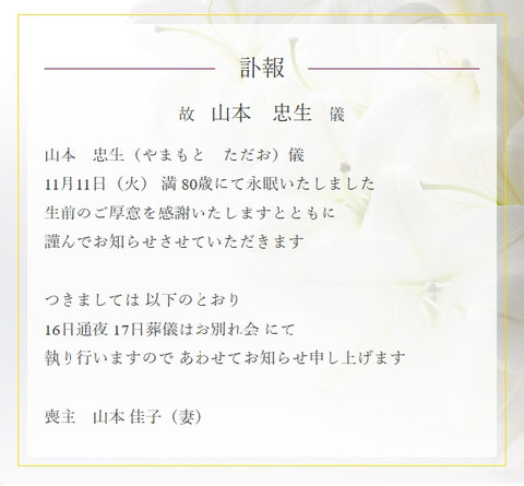 当社にご葬儀をご用命いただきましたお客様のご訃報を掲載しております。
